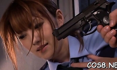 une asiatique en uniforme aux gros seins
