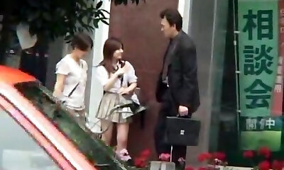 Super-cute Japanese teen invites 2 men for threesome